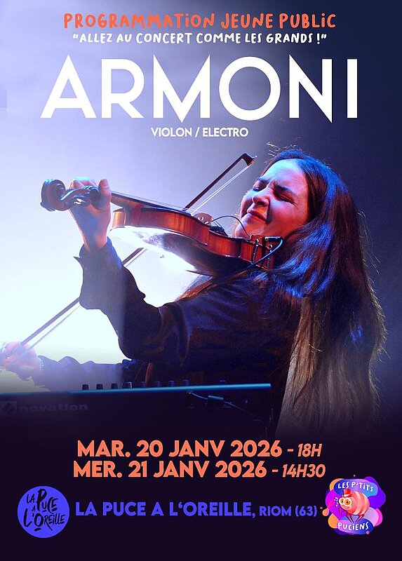 La Puce a L'OreilleTel un cœur électronique habillé de crin et de cordes virtuoses, Armoni s’inspire des grands noms de la poésie francophone comme Edmond Rostand et Léopold Sédar Senghor, pour dessiner des chansons rêvées et mystérieuses.
