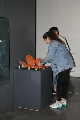 Le mardi 14 mai les collégiens se sont rendus au musée pour installer leurs œuvres au cœur même des collections. L’équipe de conservation était présente pour ouvrir les vitrines. Ils ont eu la chance de découvrir cet aspect confidentiel du musée et d’approcher au plus près les objets antiques.