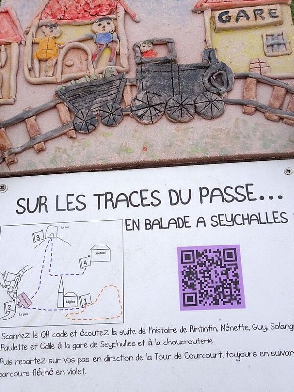 Ce projet intitulé « Sur les traces du passé – En balade à Seychalles », a abouti à la réalisation d’un circuit « conté » sur la commune de Seychalles, avec des enregistrements sonores et vidéos des récits des élèves, accessibles par smartphone via des QR code.