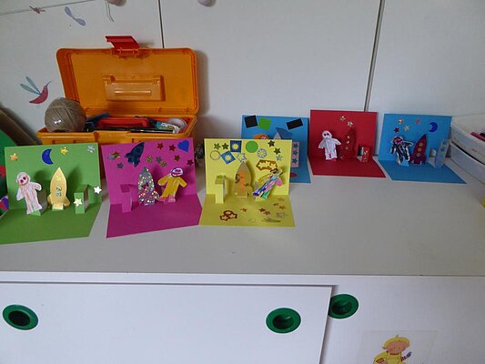 Un atelier avec les petits et l'aide d'une animatrice, sur le thème de l'espace abordé le temps des vacances d'hiver.