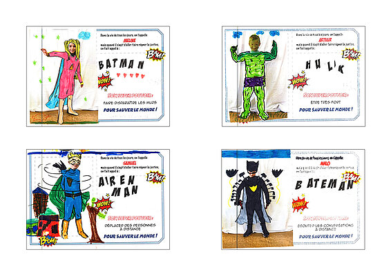 L'ensemble des cartes a ensuite été réuni en un annuaire des Super-héros, permettant de conserver le travail de tous les élèves en un document unique.