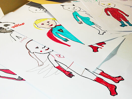 • créé un personnage fictif inspiré des supers-héros (thème de travail en parallèle en classe)