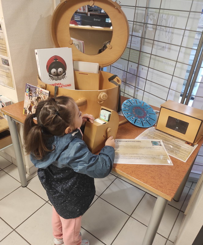 La Médiathèque départementale du Puy-de-Dôme prête aux bibliothèques de son réseau la Malle Balbu-ciné, un support de médiation réunissant des objets emblématiques du pré-cinéma pour expérimenter les premières tentatives d’animation des images.