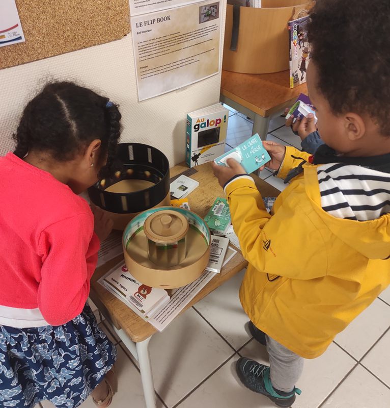 Thaumatrope, lanterne magique, boîte d’optique, phéna-kistiscope, praxinoscope, zootrope, strobotop, etc. : ce petit cabinet de curiosités invite à regarder, découvrir pour ensuite créer ses propres dessins animés.