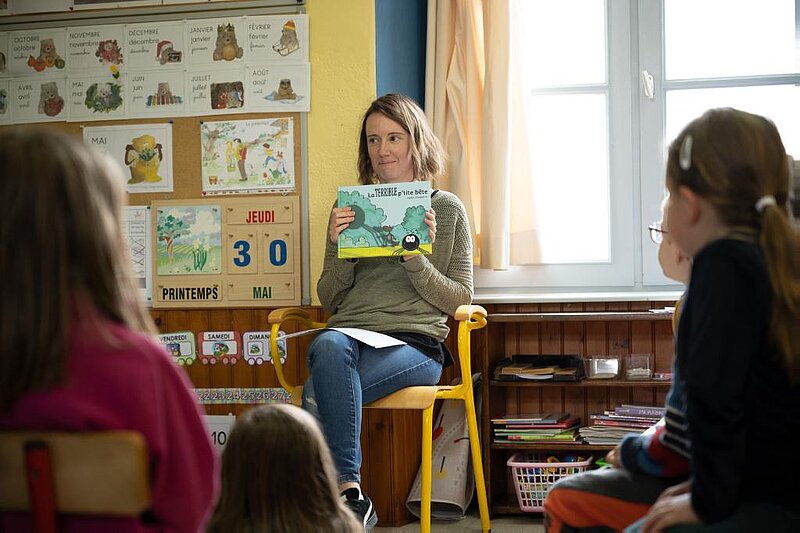 Cette année, l'auteure de l'album La TERRIBLE p'tite bête (album offert aux enfants nés ou adoptés dans le Puy-de-Dôme en 2024) est intervenue auprès de 350 enfants puydômois.