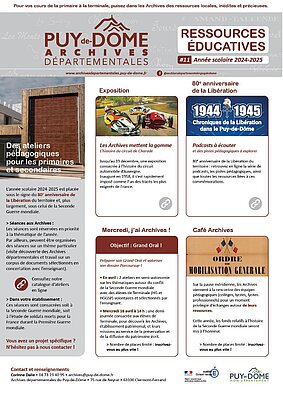 Archives départementales du Puy-de-DômeChaque année, la Lettre #Ressources éducatives, diffusée largement auprès des enseignants, propose une sélection de documents en lien avec les programmes scolaires.