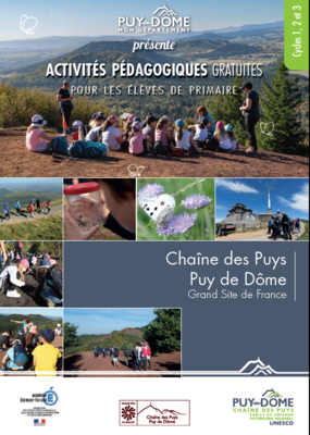 Plaquette cycle 1, 2 et 3 des ressources et animations pédagogiques Grand Site de France - Chaîne des Puys - puy de dôme (PDF)Plaquette Panoramique des Dômes 2025 (PDF)