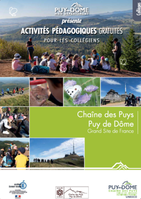 Plaquette collège des ressources et animations pédagogiques Grand Site de France - Chaîne des Puys - puy de dôme (PDF)Plaquette Panoramique des Dômes 2025 (PDF)