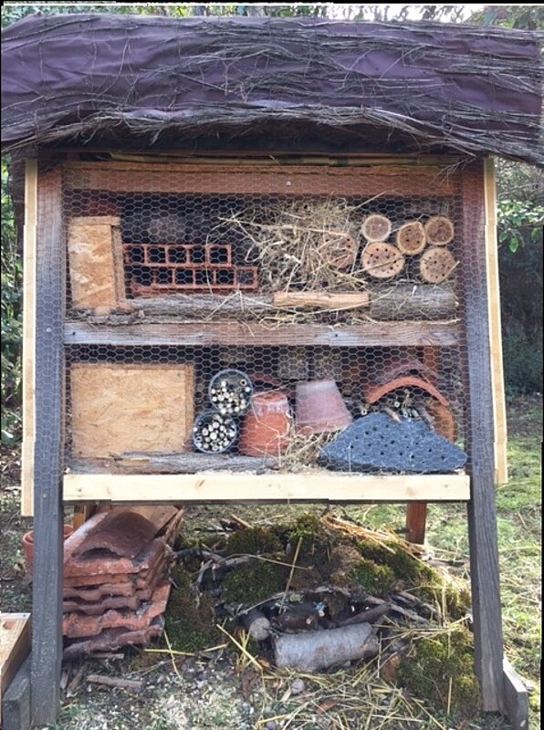 Matériel : hôtel à insectes, bac à compost, boites “Insectes du jardin”, modèles pédagogiques : fleur, abeille, papillon.