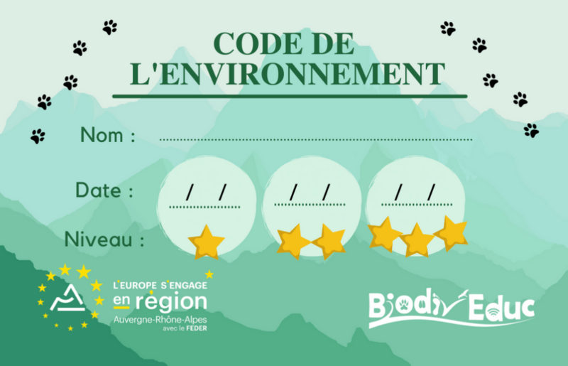 Biodiv'EducPour cela, nous avons créé le « Code de l’environnement », un atelier qui se compose, comme l’examen du permis de conduire, d’une partie théorique et d’une partie pratique ; et qui se décline selon les différents niveaux des programmes scolaires.