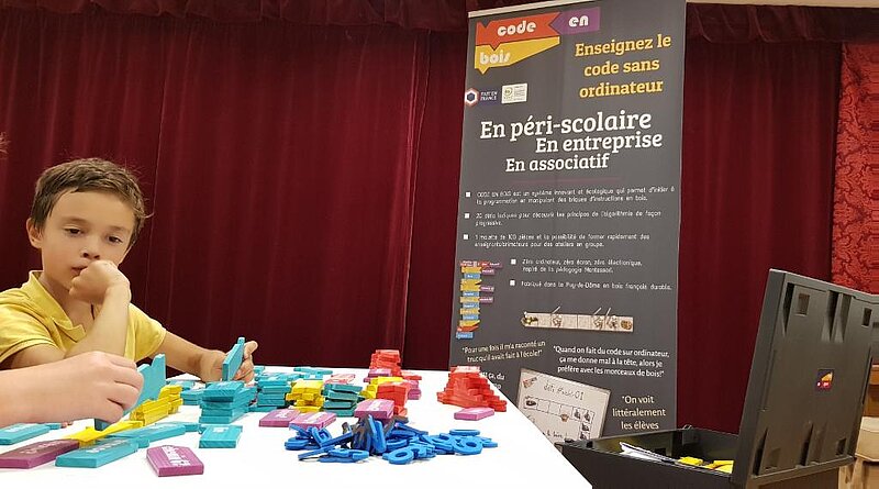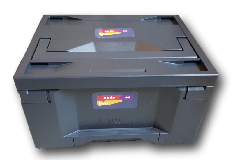 Code en Boisla mallette Code en Bois permet de découvrir le code, la programmation et l'algorithmie sans écran. Les activités s'apparentent à du Scratch, mais tout en pièces de bois.