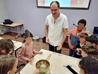Durée : 14 heures - Atelier 1 : "11 expériences sur le son" - Atelier 2 : « Comment fonctionnent les instruments de musique ? » - Atelier 3-2 "Construction d'un accordéon en kit" - Atelier 4 "Théâtre et Sciences" au sein de "Musique & Sciences" - Représentation, Spectacle, Échanges.