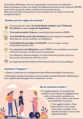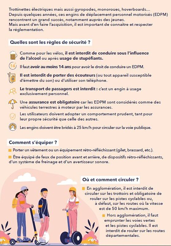 A destination d'abord des parents, mais également utile pour les élèves, cette plaquette de prévention rappelle les règles de sécurité relatives aux engins et aux équipements, en présentant certains aspects encore méconnus tels l'âge minimum de 14 ans ou l'assurance obligatoire.