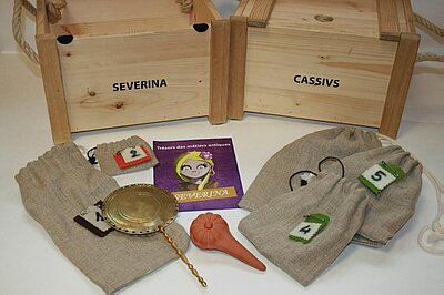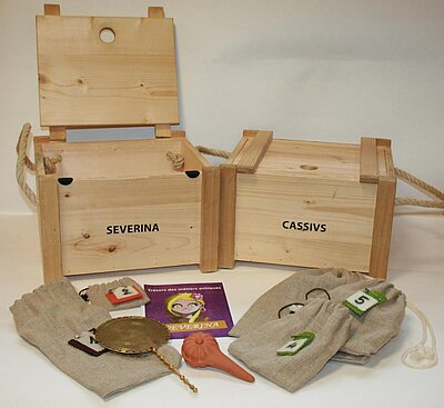 Musée départemental de la CéramiqueLes coffrets contiennent des objets cachés appartenant à un personnage "mystère" exerçant un métier très présent dans la civilisation romaine dont les collections du musée témoignent (le potier, le responsable de cuisson, le commerçant, la nourrice, le cuisinier, le légionnaire romain).