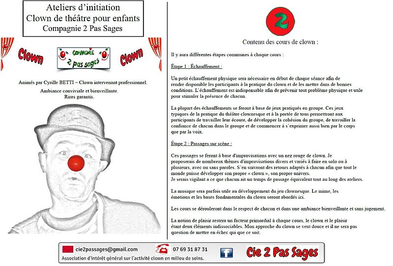 Association loi 1901 créée en 2013 et dont le domaine d'activité est de promouvoir l'art du clown. Association reconnue d'intérêt général sur l'activité clown en milieu de soins.