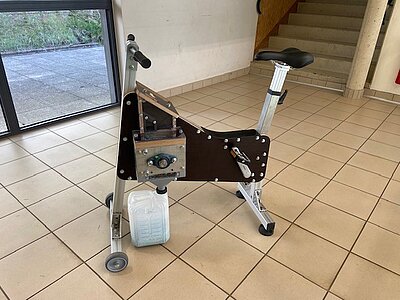 - un broyeur à pédales (une sorte de vélo d'appartement sur lequel a été adapté un broyeur)